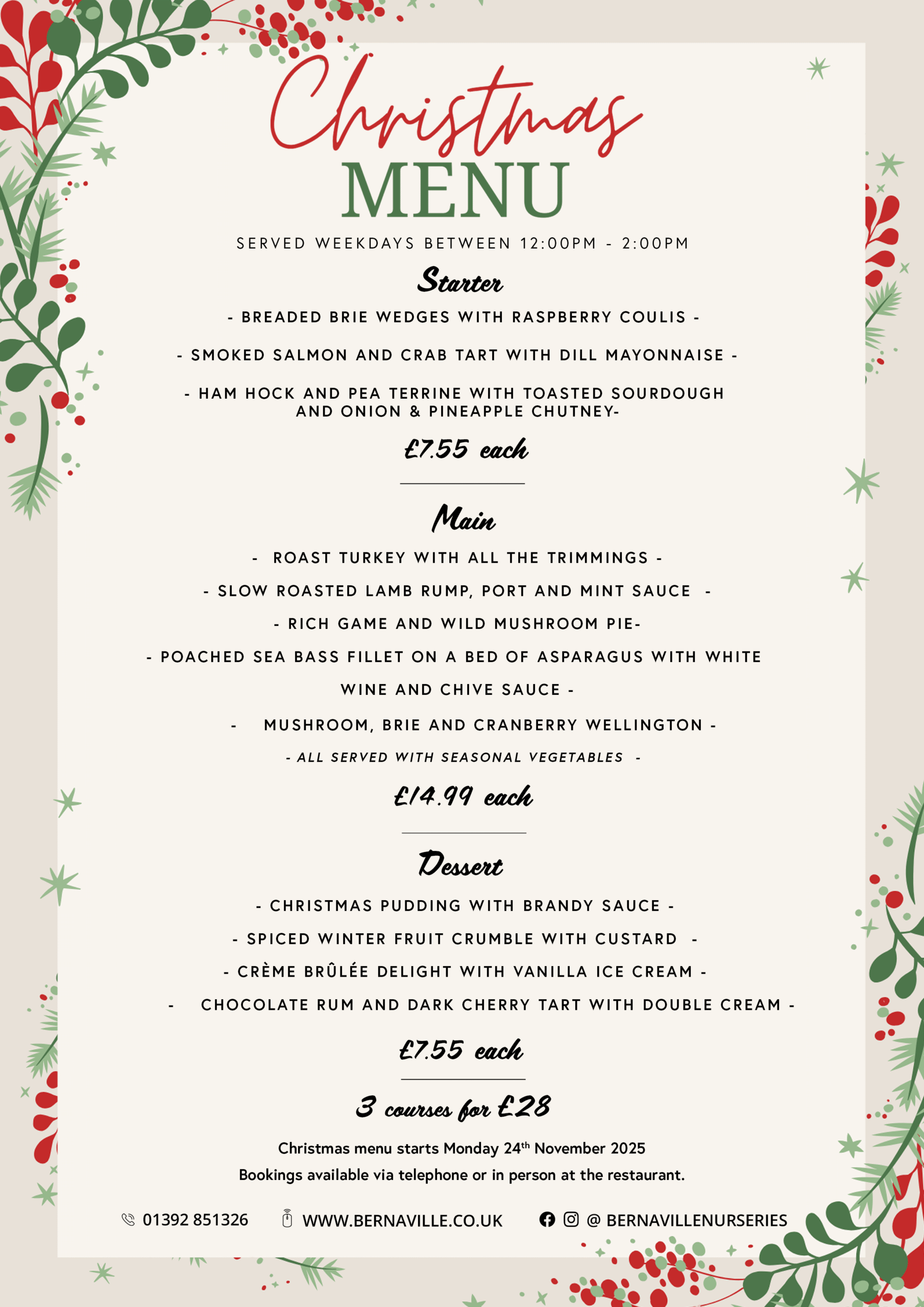 3 COURSES FOR £28